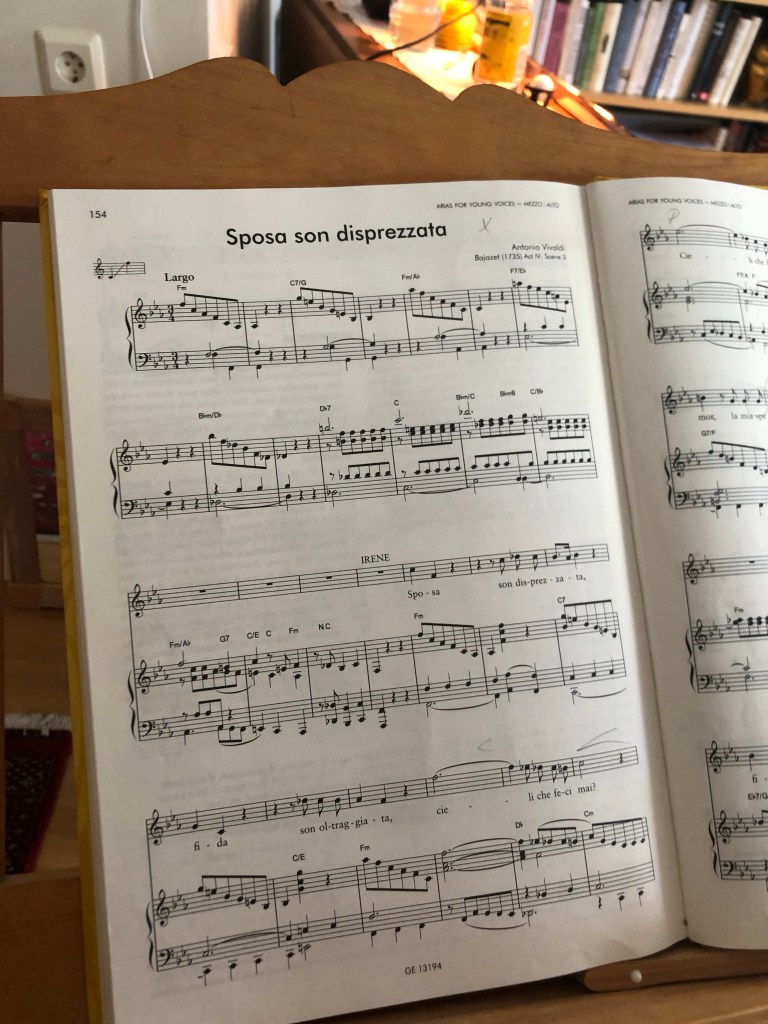 Bra jobbat, kul att det lönar sig att jobba! messar min sångpedagog efter dagens lektion. Ett bra kvitto, tänker jag. Nog för att jag övar mycket sång, men nästan aldrig att jag står rätt upp och ner med noterna på ett notställ och övar sång. Sjunger upp när jag bäddar sängen eller plockar ur diskmaskinen. Övar koloraturer när jag dammsuger eller kör bil. Sjunger opera med dammvippan i handen. Brukar lägga noterna på spisen om jag måste gå dit och kolla, annars går jag runt runt runt i huset. Känner mig som min barndoms favorit Kungens lilla piga som sjunger medan hon städar och har ett strålande humör.