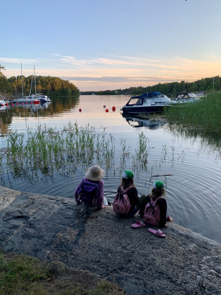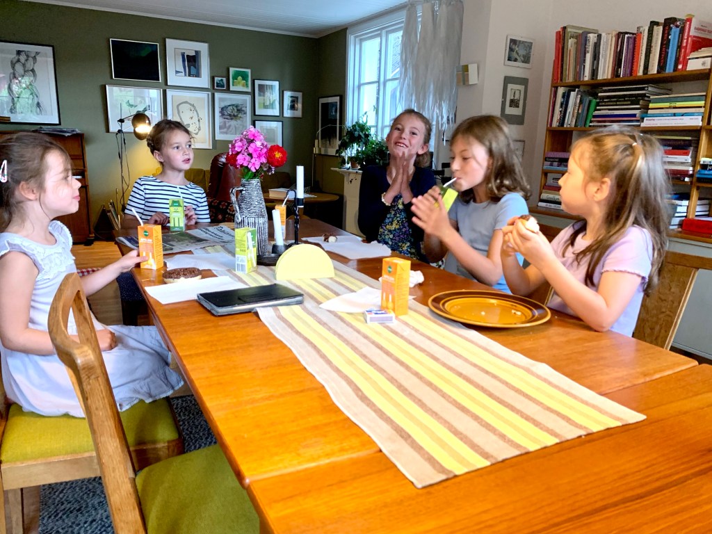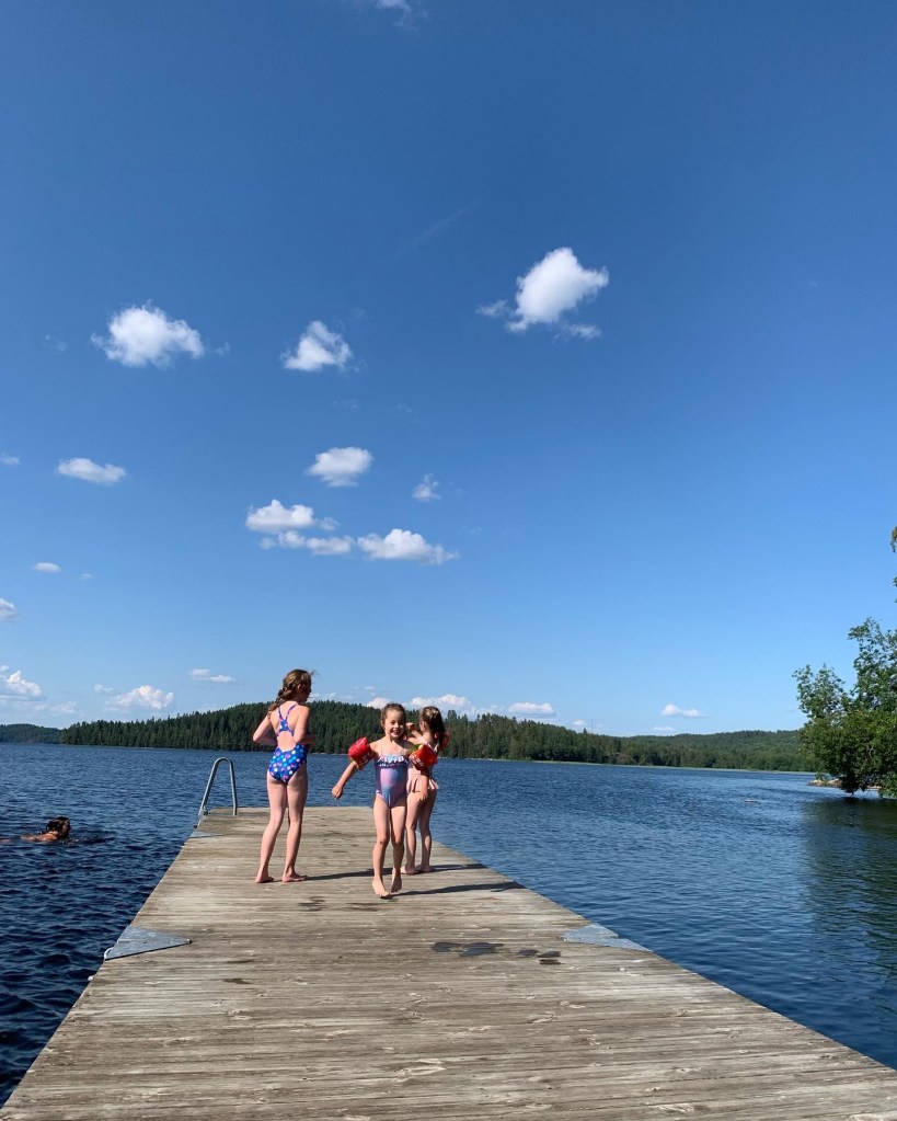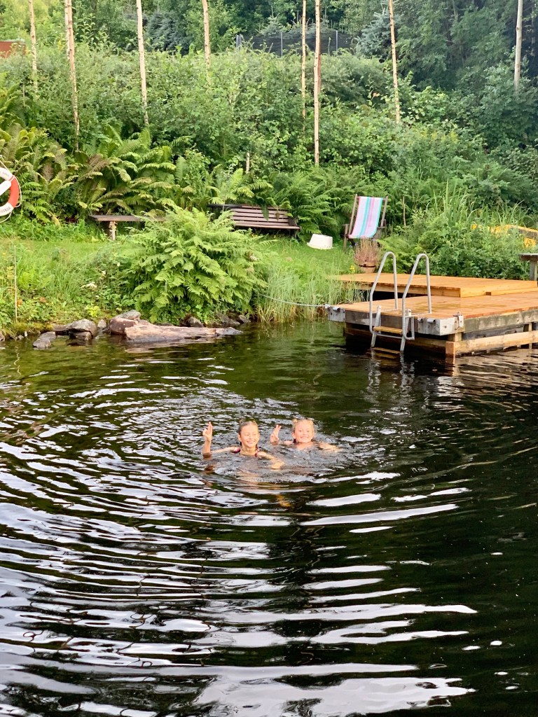 Sen är min och barnens krav på en lyckad sommar är inte så stora. Det är kul om det är fint väder, men det går bra om det regnar också. Vi har inget behov av häftiga upplevelser. Antingen har vi varit hemma på Djurö och skrotat runt eller så har vi varit i Dalsland och skrotat runt. Från att de vaknat till de somnat har kusinerna gått vid varandras sida. Ätit frukost, lekt de mest fantasifulla lekar, skrivit sånger, blivit osams och sams igen, sytt väskor och plockat hallon. Jag är så väldigt glad både över relationen de får till varandra och relationen jag får till mina systerdöttrar.
