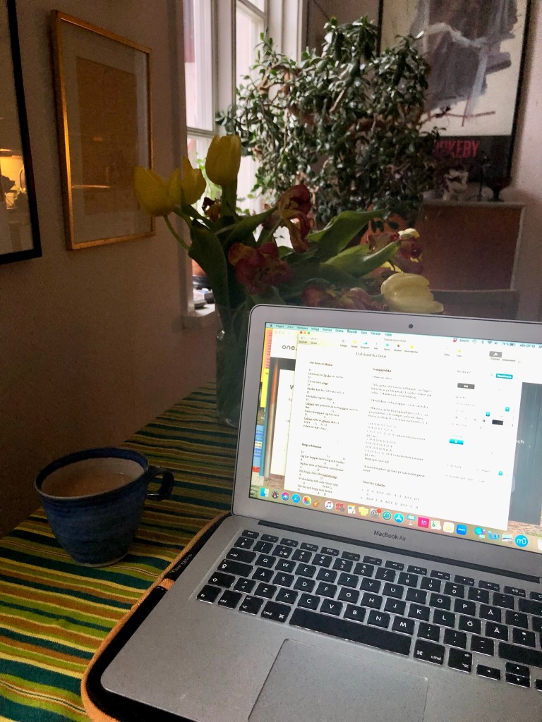 Kanske är det för att när jag inte ständigt måste öva in massa musik till nya begravningar så finns plötsligt tid för den egna kreativiteten. Jag har plötsligt haft tid för att skriva musik. Häromdagen hittade jag på soloprojektet ”En folkmusikalisk lunchpaus” och skickade in en ansökan till Kulturrådet. Jag hinner plötsligt öva bara för min egen skull och inte för att något måste levereras inom två dagar. Helt plötsligt hinner jag vara kreatör då och då och inte bara hantverkare. Fila på hantverket kan man göra fem minuter här och fem minuter där, men kreativiteten måste man ge tid. Det har jag lärt mig den här första arbetsmånaden.
