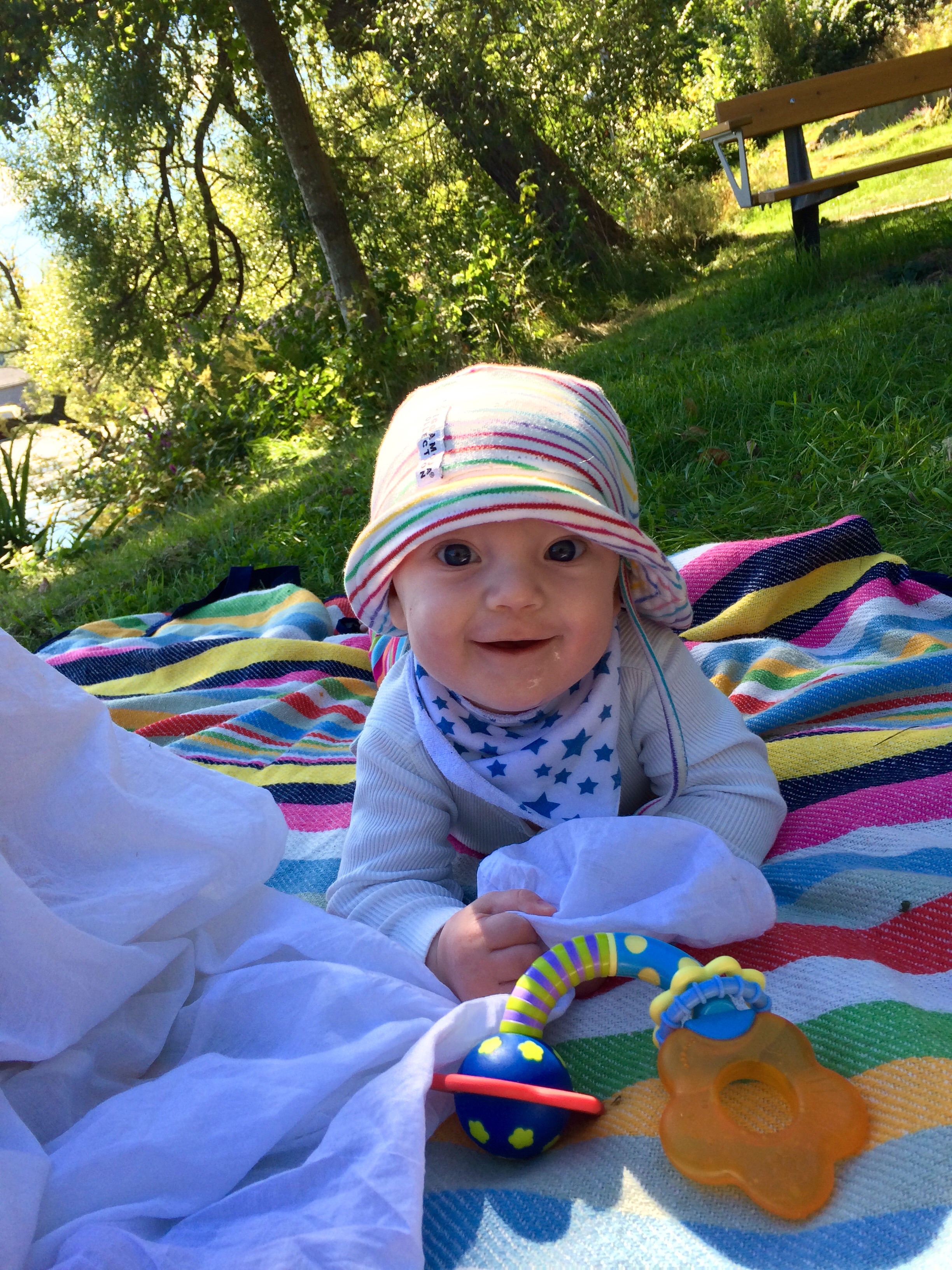 Och nu hörde jag henne skratta ute i vardagsrummet! Det har varit på gång i några dagar men nu kom det första riktiga skrattet. Blev så berörd av det att jag måste lägga frilansaren åt sidan och bara vara förälder en stund.